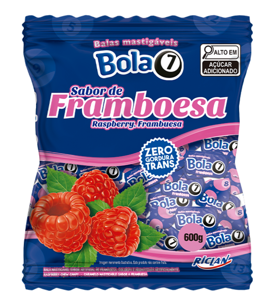 Embalagem de 600g contendo aproximadamente 120 unidades. Ingredientes: açúcar, xarope de glucose, óleo de palma, acidulante ácido cítrico, emulsificantes mono e diglicerídeos de ácidos graxos e lecitina de soja, aromatizante e corante artificial vermelho 40. Não contém glúten.